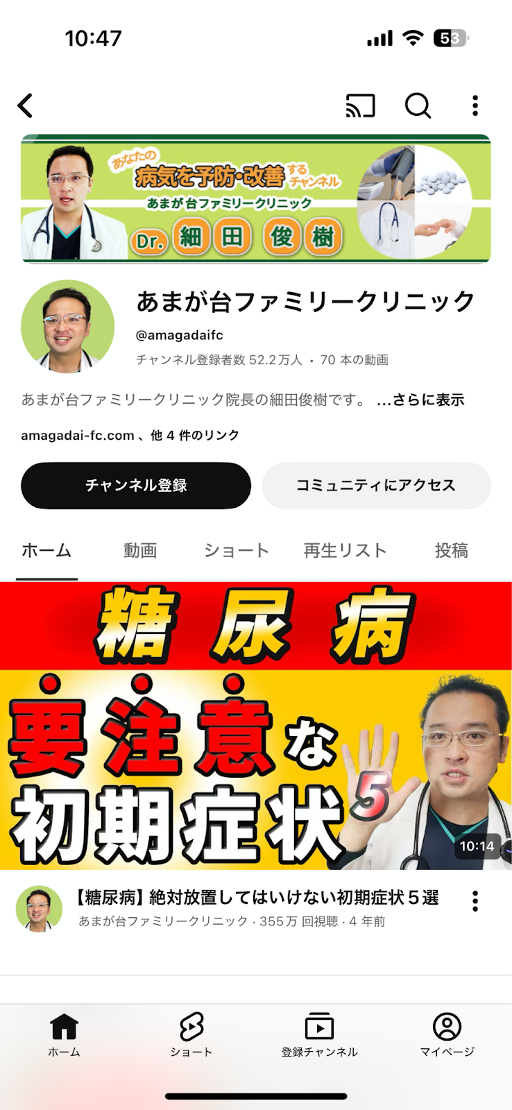 クリニックのYouTubeアカウント成功事例1つ目は、あまが台ファミリークリニックです。