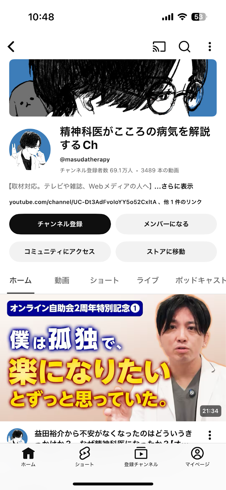 クリニックのYouTubeアカウント成功事例3つ目は、精神科医がこころの病気を解説するChです。