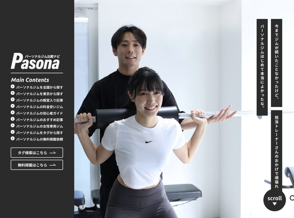 Pasonaは、全国のパーソナルジムをまとめた「パーソナルジム比較ナビ」です。