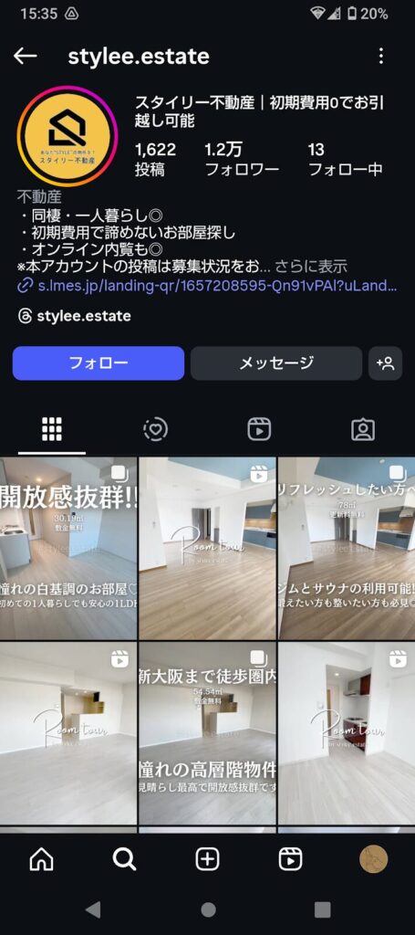 物件の魅力を写真で直感的に伝えられるだけでなく、ストーリーズやリールを活用することで、日常的な情報発信やブランドイメージの構築にもつながります。