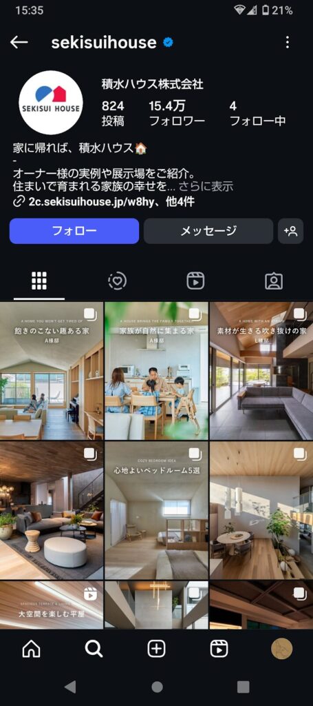 不動産インスタアカウントの成功事例の1つ目は、積水ハウスです。