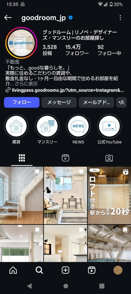 不動産インスタアカウントの成功事例の3つ目は、グッドルームです。