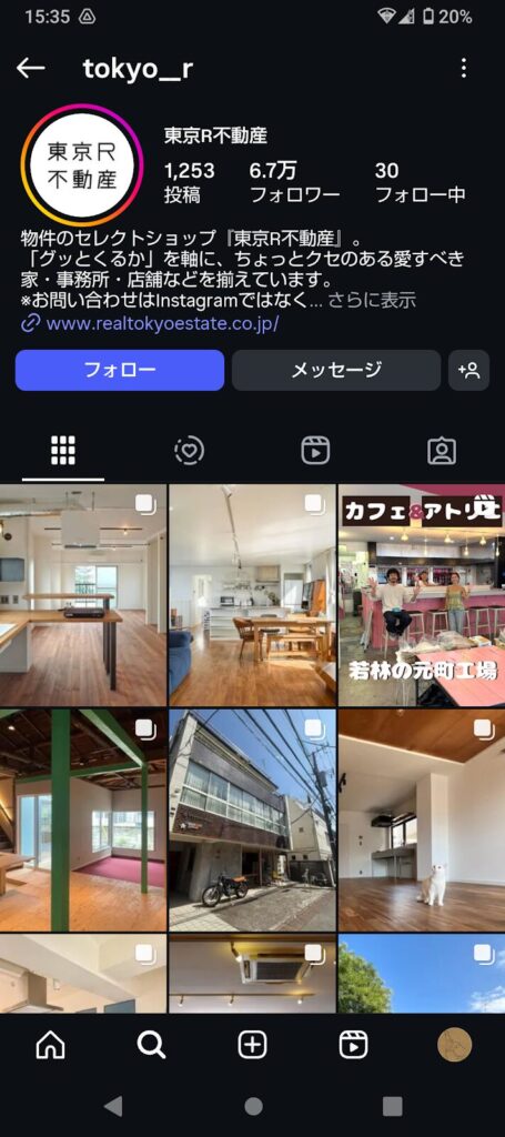 不動産インスタアカウントの成功事例の5つ目は、東京R不動産です。
