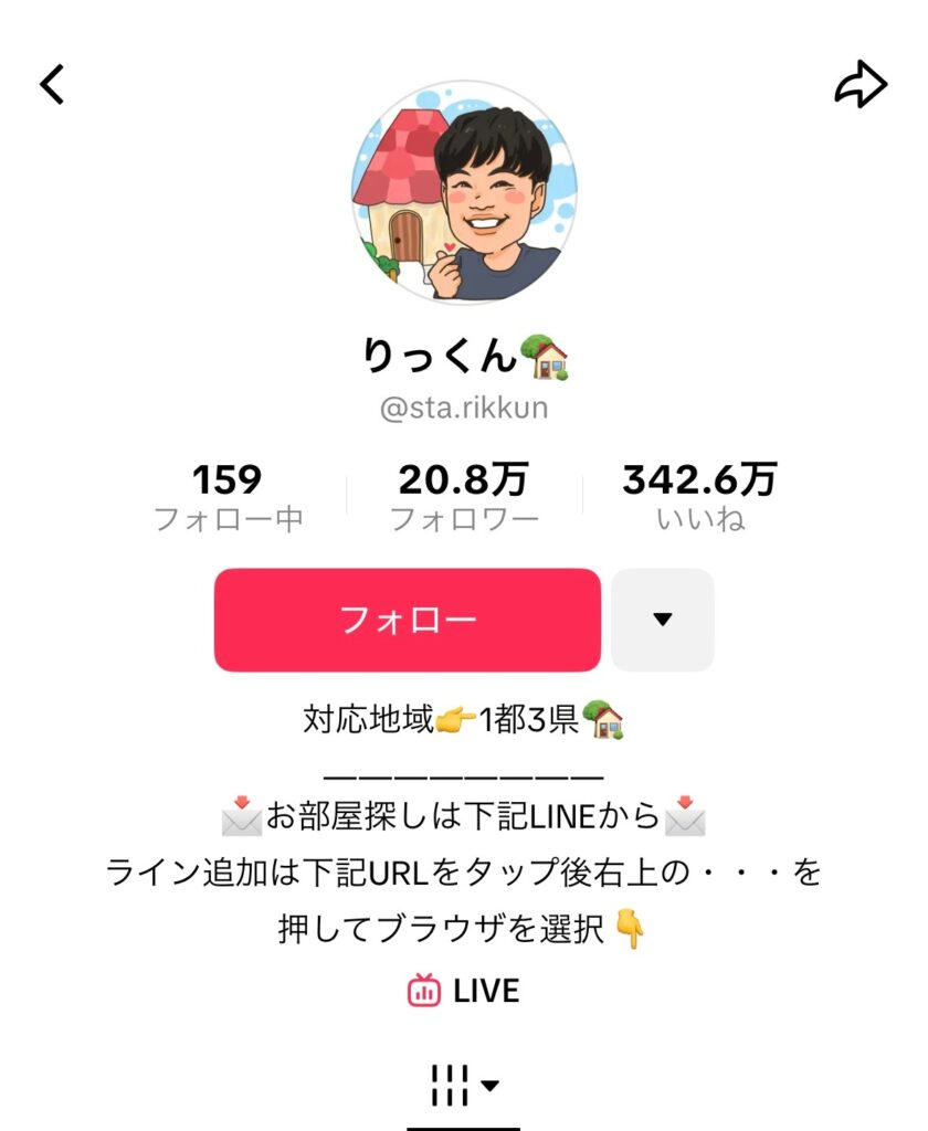 不動産TikTokアカウントの成功事例の5つ目は、りっくん不動産です。