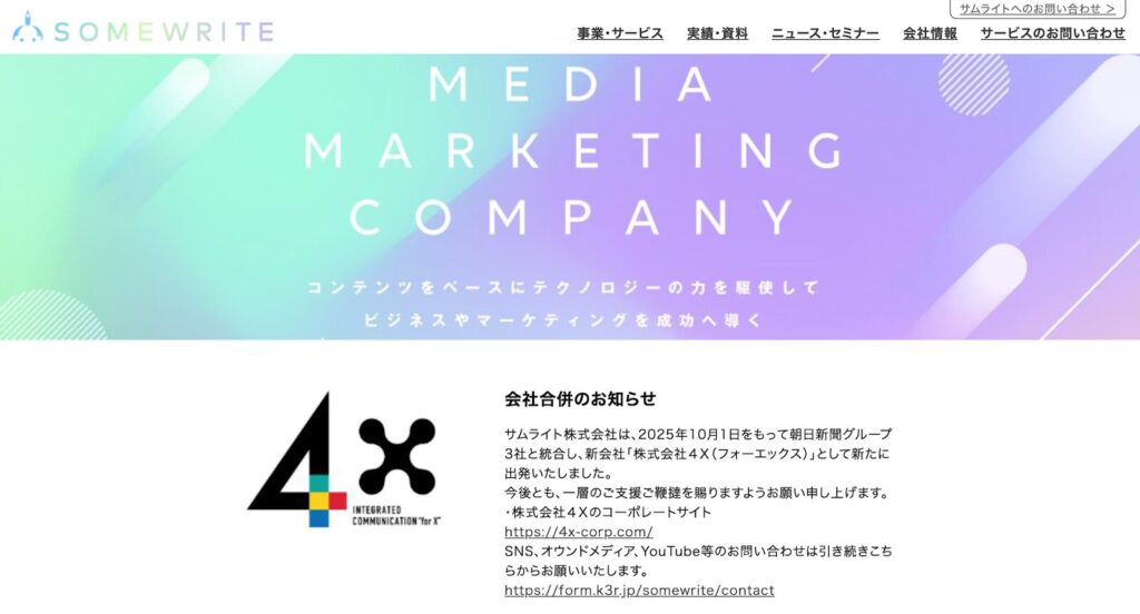 2025年10月1日付で朝日新聞グループ3社と統合し、新会社「株式会社4X(フォーエックス)」として新たなスタートを切りました。