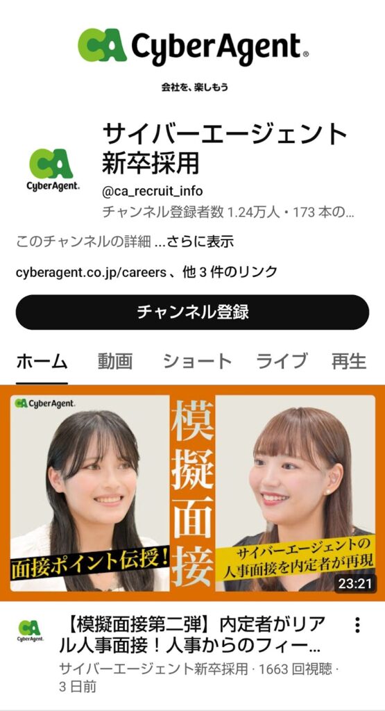 YouTube採用の成功事例7社の3つ目は、サイバーエージェント新卒採用です。