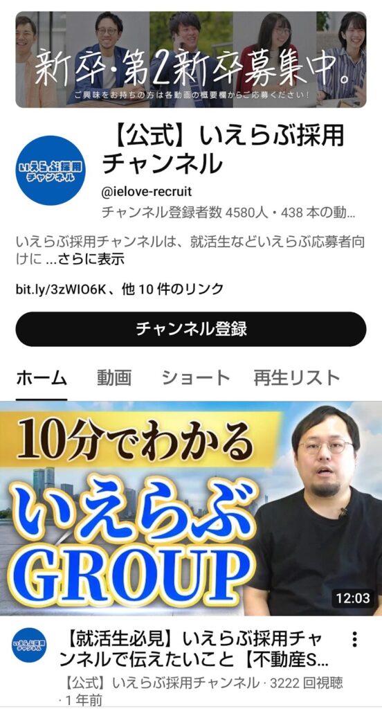 YouTube採用の成功事例7社の5つ目は、【公式】いえらぶ採用チャンネルであることです。