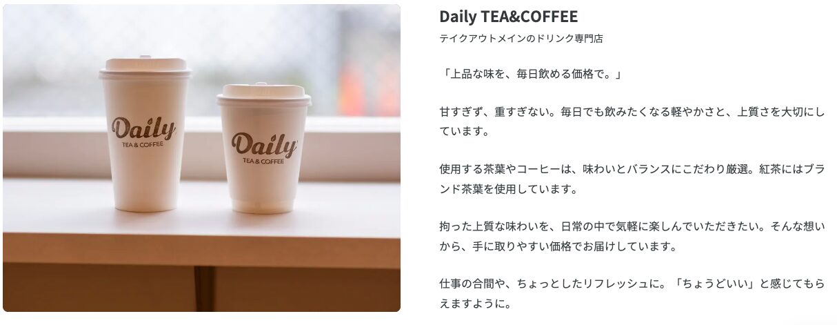 4月27日にDaily TEA&COFFEEがオープンしました。